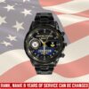 Make your Black Stainless Steel Watch a reflection of your personal journey by including custom details like your name, rank, and years of service. This personalized feature not only adds a touch of elegance but also serves as a timeless tribute to your dedicated service to our country.