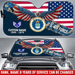 Make your Car Sun Shade uniquely yours by adding your custom information such as name, rank, and years of service. This personalized detail adds a special touch, celebrating your military journey with elegance and grace.