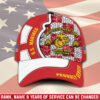 Adding personal touches like rank, name, and years of service to this cap elevates its significance, turning it into a meaningful symbol of honor and recognition.
