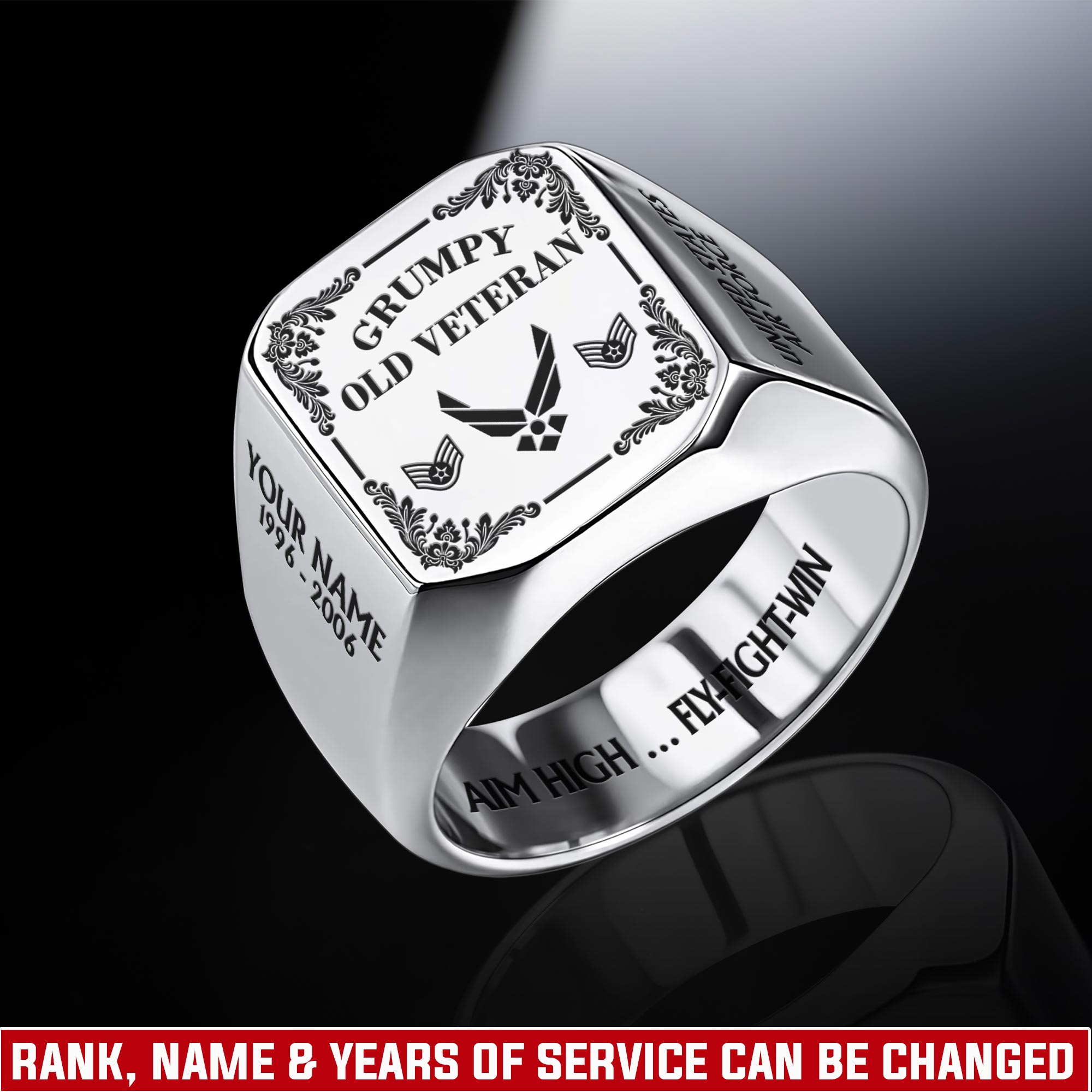 You’re enabled to customize your name, rank, rating, etc. to have them printed on the personalized engraved men’s ring. Transform this piece into a personal memorial of your service and accomplishments.