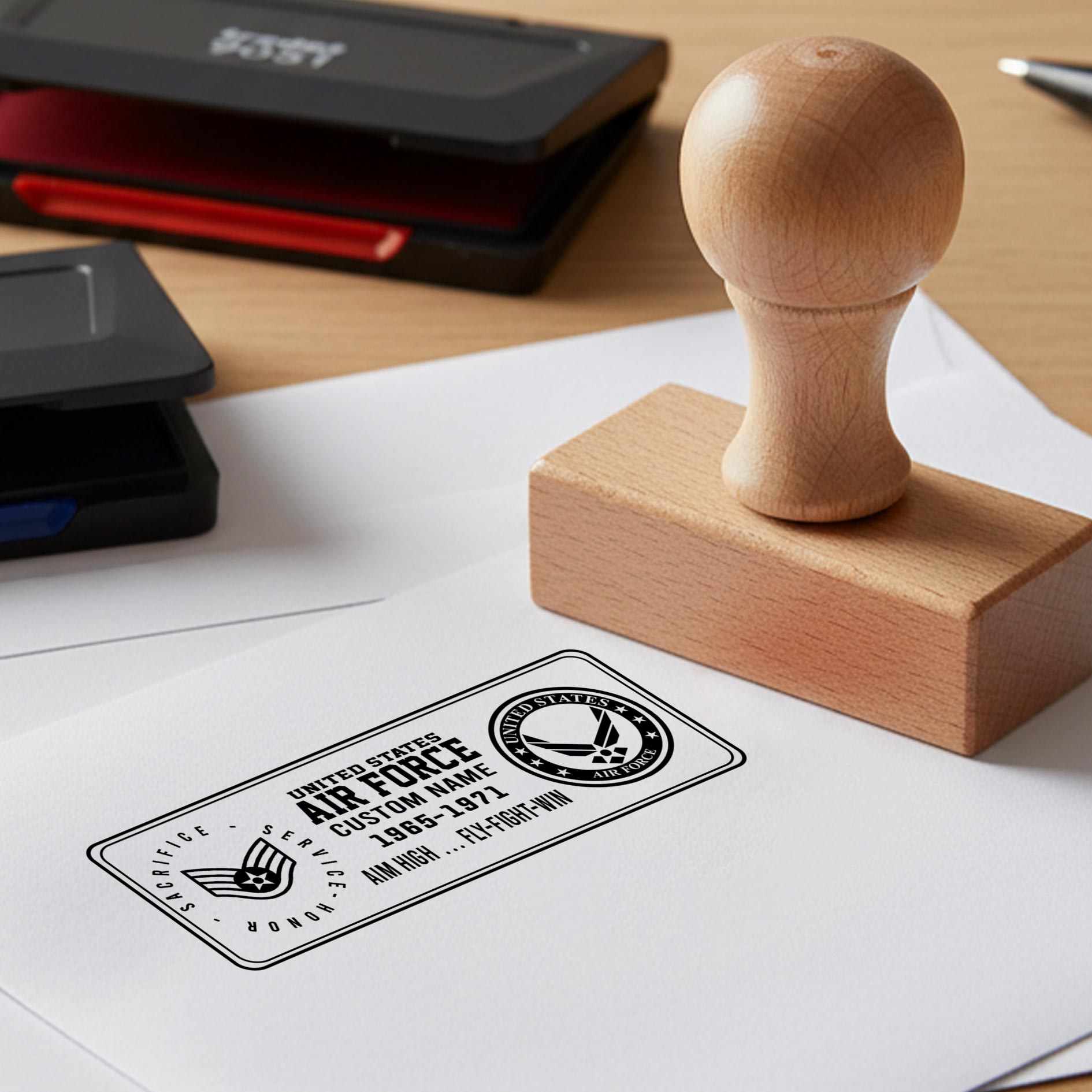 A personalized stamp that reflects your service and dedication. Perfect for adding an official touch to documents, letters, and certificates—this stamp is a practical keepsake that carries your military pride with every use.