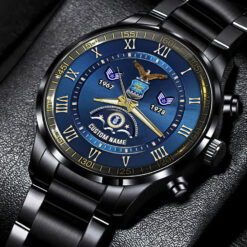Personalize your Black Stainless Steel Watch with custom engravings of your name, rank, and years of service. This thoughtful addition transforms your watch into a cherished memento, honoring your dedication and commitment to service.