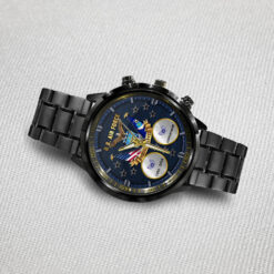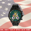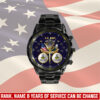 Elevate your Black Stainless Steel Watch with a personal touch by incorporating your custom details like name, rank, and years of service. This unique addition commemorates your military experience in a stylish and meaningful way.