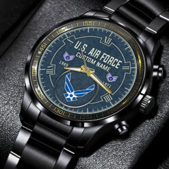 Make your Black Stainless Steel Watch uniquely yours by adding your custom information such as name, rank, and years of service. This personalized detail adds a special touch, celebrating your military journey with elegance and grace.