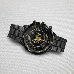 Make your Black Stainless Steel Watch a reflection of your personal journey by including custom details like your name, rank, and years of service. This personalized feature not only adds a touch of elegance but also serves as a timeless tribute to your dedicated service to our country.