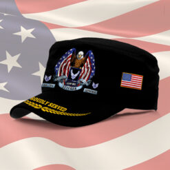Adding personal touches like rank, name, and years of service to this cap elevates its significance, turning it into a meaningful symbol of honor and recognition.