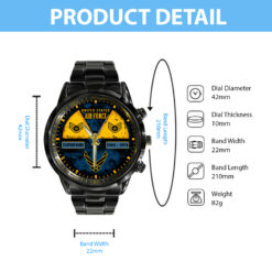 Customize your Black Stainless Steel Watch with your name, rank, and years of service for a truly one-of-a-kind timepiece. This personalized feature allows you to showcase your military journey with pride and distinction.