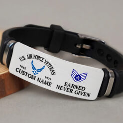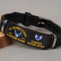 Incorporating an adaptive strap mechanism, the bracelet transcends traditional sizing limitations. It emerges as a profound tribute to veterans, symbolizing dedication, service, and the enduring spirit of patriotism.