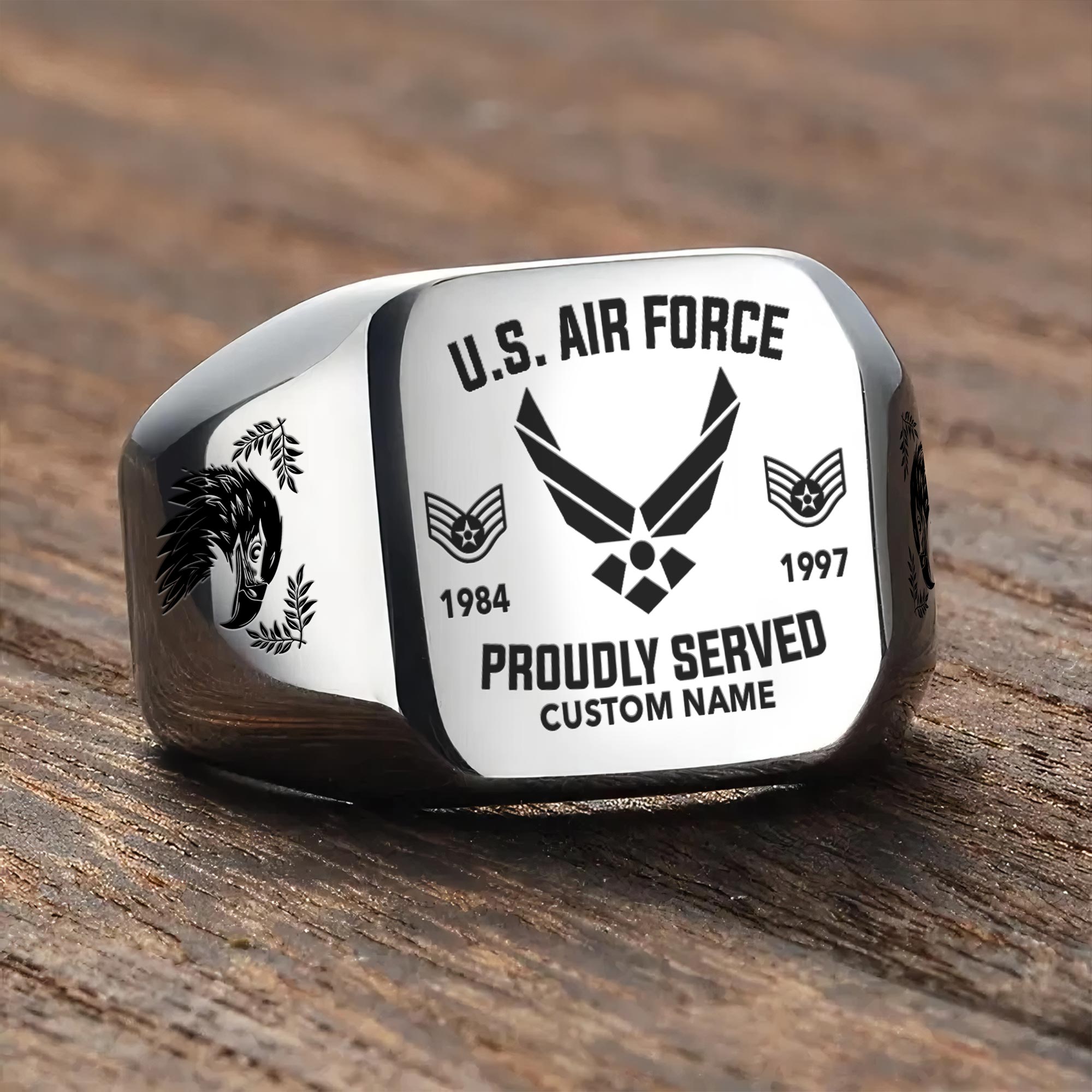 You’re enabled to customize your name, rank, rating, etc. to have them printed on the personalized engraved men’s ring. Make it uniquely yours by incorporating elements that celebrate your military identity and legacy.