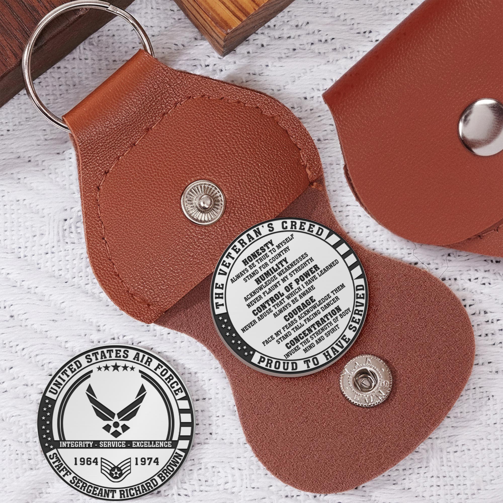 Built with respect and precision, the Veteran Honor Challenge Coin features professional-grade stainless steel with custom engraving on both surfaces. Accompanied by a durable PU leather case with snap closure and keychain, it’s designed to last a lifetime.