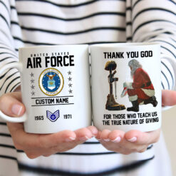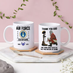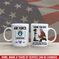 Personalize your coffee experience with our mugs, featuring customizable designs on both sides. From names to ranks and years of service, make a unique statement to honor veterans.