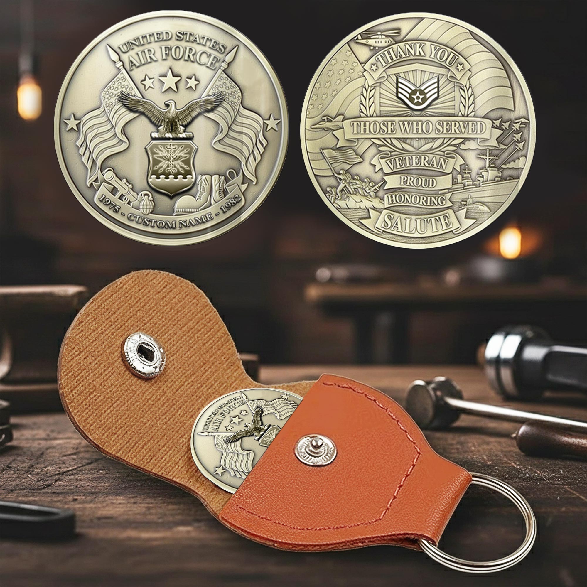 The Military Commemorative Challenge Coin showcases exceptional craftsmanship with detailed printings on both sides of solid stainless steel. Protected in a quality PU leather case with secure snap fastener, this coin honors military heritage and individual achievement.