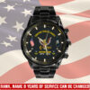 Personalize your Black Stainless Steel Watch with custom engravings of your name, rank, and years of service. This thoughtful addition transforms your watch into a cherished memento, honoring your dedication and commitment to service.