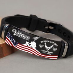 Featuring a dynamic adjustable strap, the bracelet transcends conventional sizing constraints. It emerges as a powerful symbol of veteran appreciation, embodying the profound values of service, honor, and national pride.