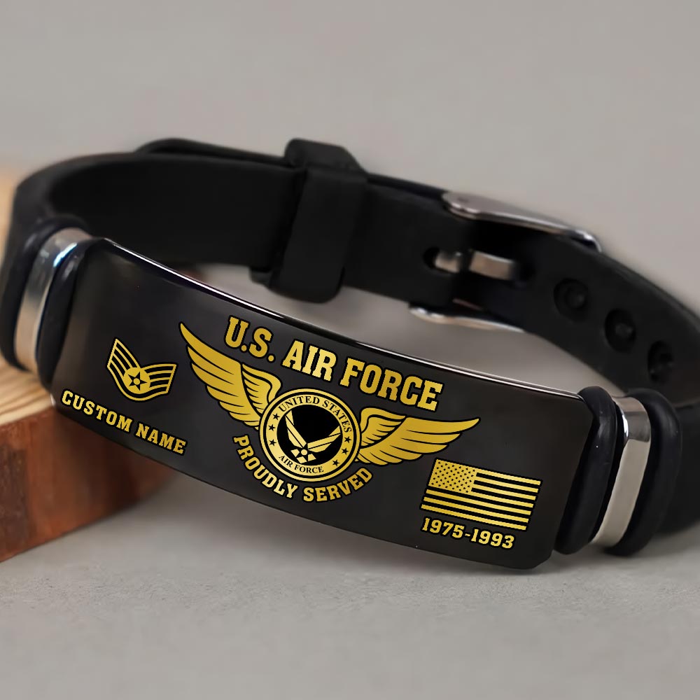 Featuring a dynamic adjustable strap, the bracelet transcends conventional sizing constraints. It emerges as a powerful symbol of veteran appreciation, embodying the profound values of service, honor, and national pride.