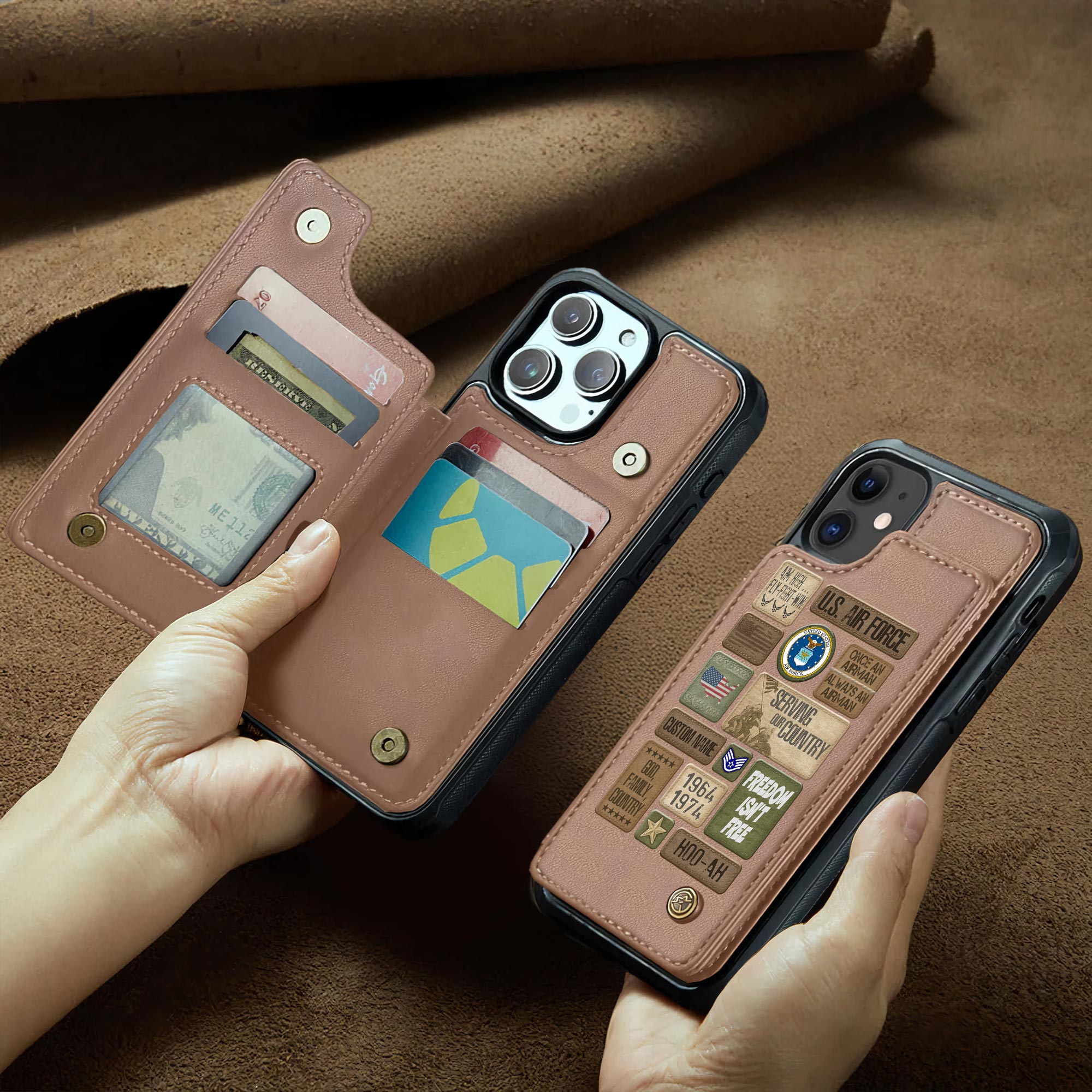 Celebrate military heritage with our superior Veteran Leather Flip Wallet Phone Case, skillfully constructed from resilient PU leather to guarantee enduring protection and elegant presentation.