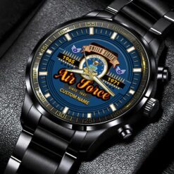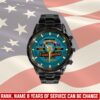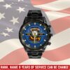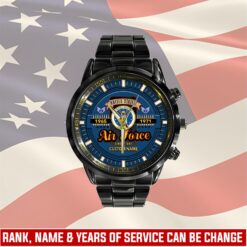 Make your Black Stainless Steel Watch uniquely yours by adding your custom information such as name, rank, and years of service. This personalized detail adds a special touch, celebrating your military journey with elegance and grace.