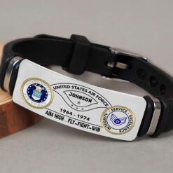 Incorporating an adaptive strap mechanism, the bracelet transcends traditional sizing limitations. It emerges as a profound tribute to veterans, symbolizing dedication, service, and the enduring spirit of patriotism.