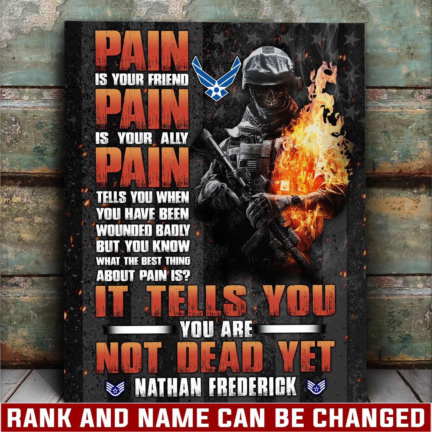 Make it personal with our customizable canvas. Add your name, rank, or any other details you choose to create a heartfelt tribute to your service and sacrifice.