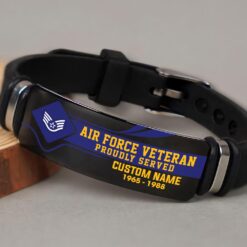 Incorporating an adaptive strap mechanism, the bracelet transcends traditional sizing limitations. It emerges as a profound tribute to veterans, symbolizing dedication, service, and the enduring spirit of patriotism.