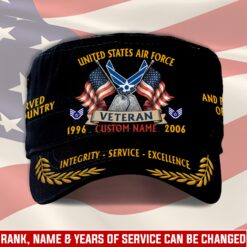 The option to customize with details like rank, name, and years of service adds a personal touch that sets this cap apart. It’s a thoughtful way to make it truly one-of-a-kind.