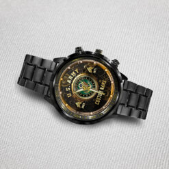Customize your Black Stainless Steel Watch with your name, rank, and years of service for a truly one-of-a-kind timepiece. This personalized feature allows you to showcase your military journey with pride and distinction.
