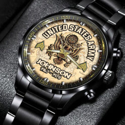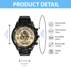 Customize your Black Stainless Steel Watch with your name, rank, and years of service for a truly one-of-a-kind timepiece. This personalized feature allows you to showcase your military journey with pride and distinction.