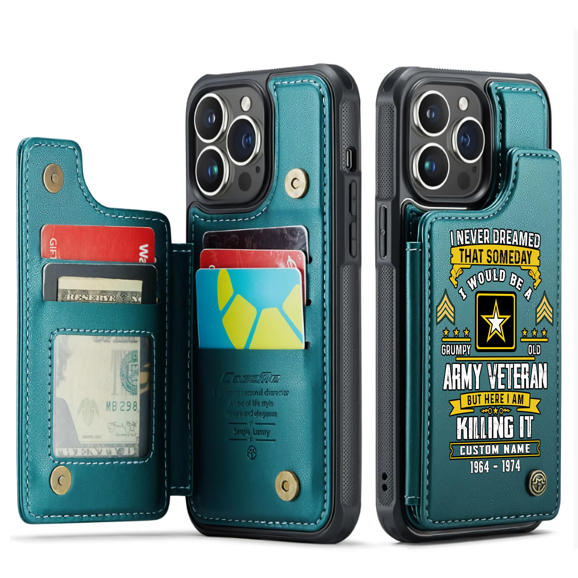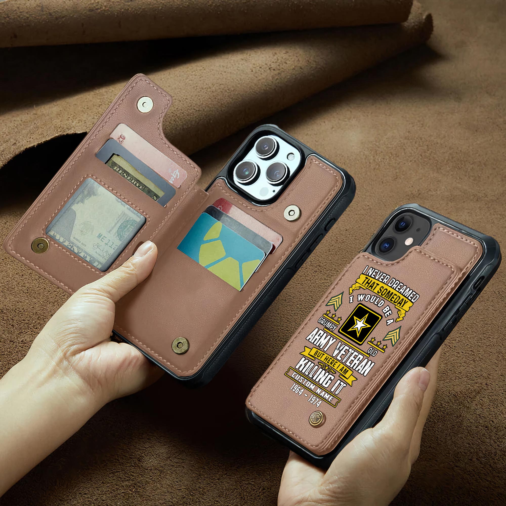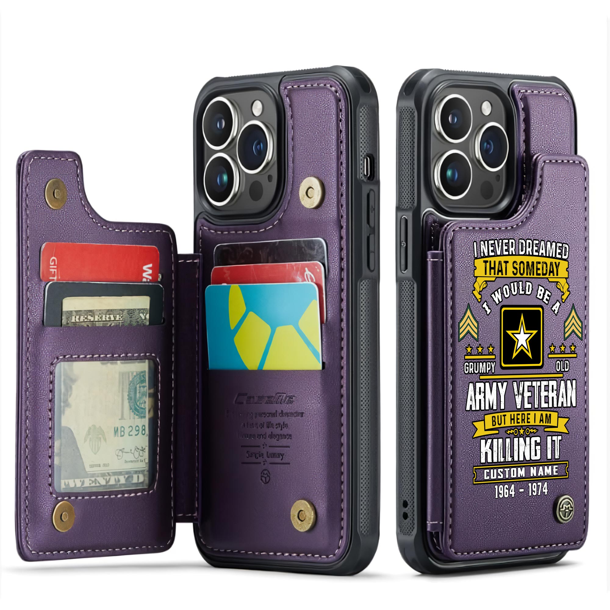 Pay tribute to military service with our exceptional Veteran Leather Flip Wallet Phone Case, precisely engineered from durable PU leather to ensure reliable protection and sophisticated aesthetics. This commemorative accessory brilliantly merges military honor with practical innovation, offering veterans, service members, and military supporters a respectful method to display their commitment while securing their essential technology.