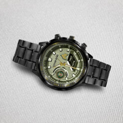 Make your Black Stainless Steel Watch a reflection of your personal journey by including custom details like your name, rank, and years of service. This personalized feature not only adds a touch of elegance but also serves as a timeless tribute to your dedicated service to our country.