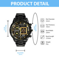 Make your Black Stainless Steel Watch uniquely yours by adding your custom information such as name, rank, and years of service. This personalized detail adds a special touch, celebrating your military journey with elegance and grace.