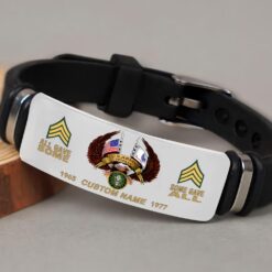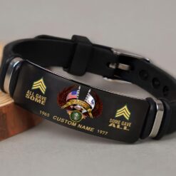 Incorporating an adaptive strap mechanism, the bracelet transcends traditional sizing limitations. It emerges as a profound tribute to veterans, symbolizing dedication, service, and the enduring spirit of patriotism.