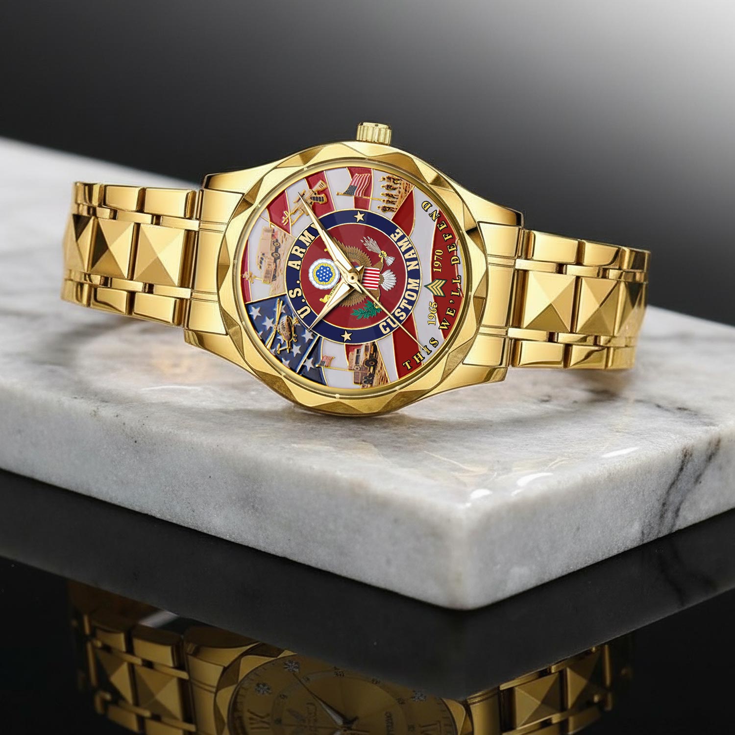US Army, American By Birth, Veteran By Choice – Diamond-Cut Bezel Watch