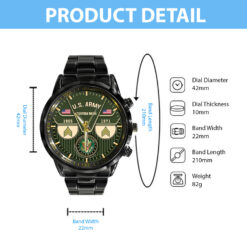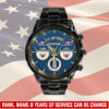 Make your Black Stainless Steel Watch uniquely yours by adding your custom information such as name, rank, and years of service. This personalized detail adds a special touch, celebrating your military journey with elegance and grace.