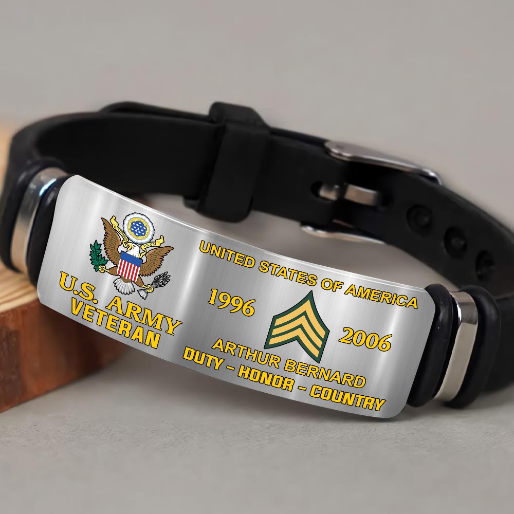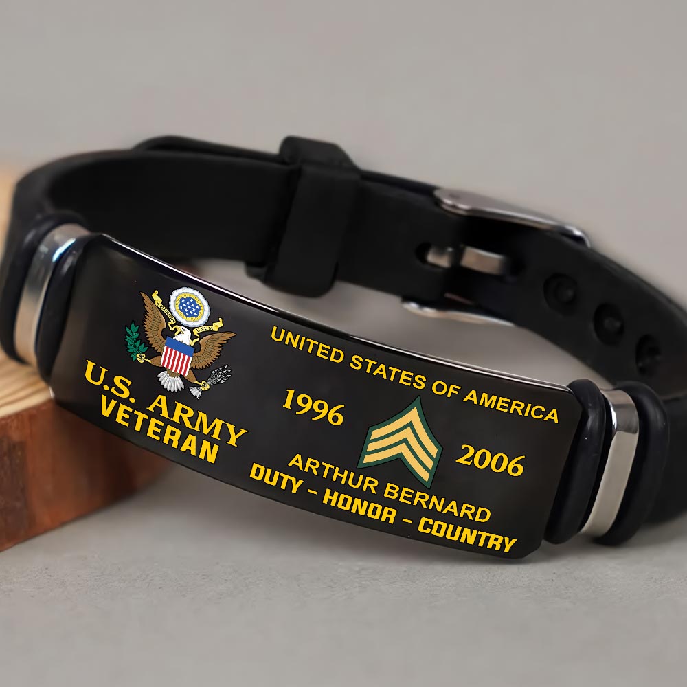 Featuring a dynamic adjustable strap, the bracelet transcends conventional sizing constraints. It emerges as a powerful symbol of veteran appreciation, embodying the profound values of service, honor, and national pride.