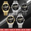 Customize your Diamond-Cut Bezel Watch with your name, rank, and years of service for a truly one-of-a-kind timepiece. This personalized feature allows you to showcase your military journey with pride and distinction.