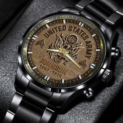 Make your Black Stainless Steel Watch a reflection of your personal journey by including custom details like your name, rank, and years of service. This personalized feature not only adds a touch of elegance but also serves as a timeless tribute to your dedicated service to our country.