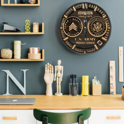 Elevate your clock with a personal touch by incorporating your custom details like name, rank, and years of service. This unique addition commemorates your military experience in a stylish and meaningful way.