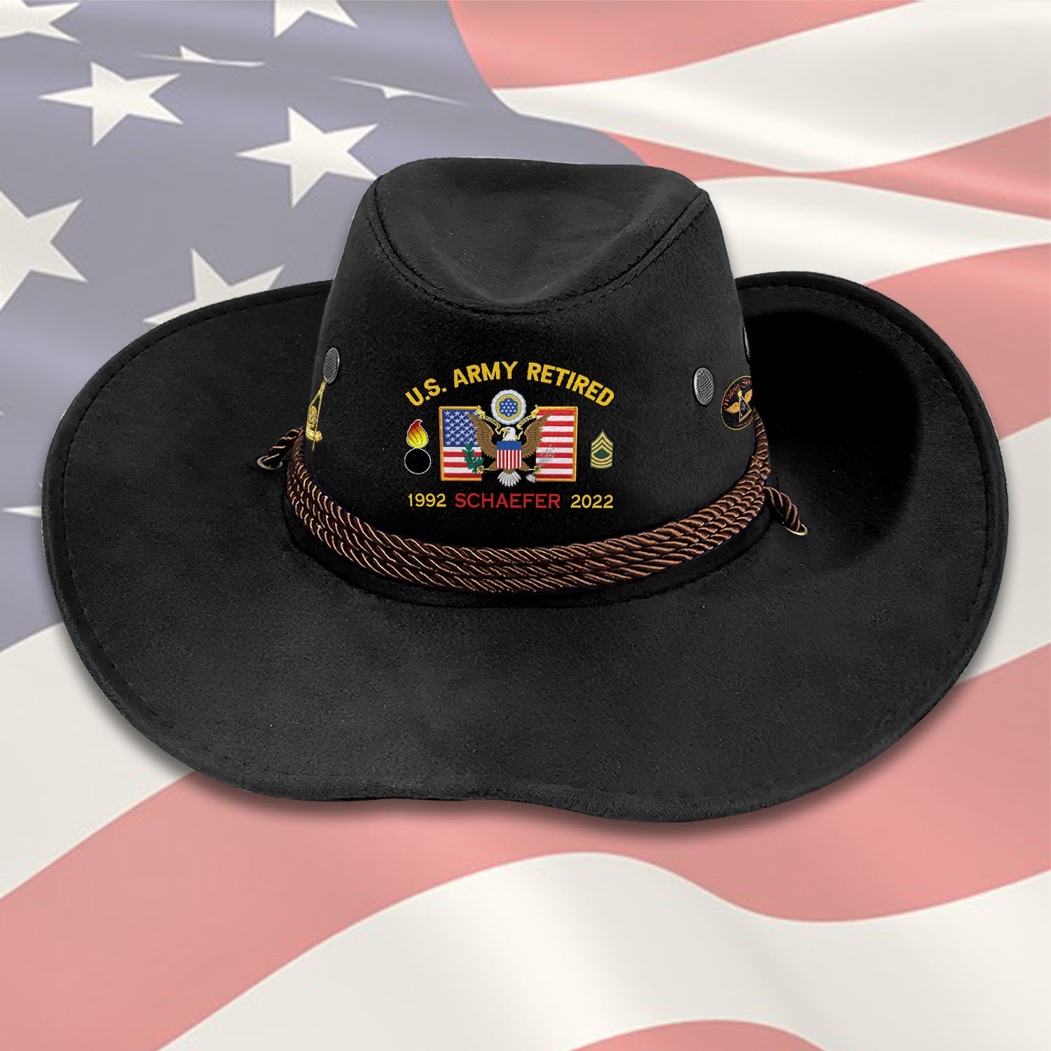 This timeless cowboy hat design incorporates military-inspired decorative elements that honor service. Flexible sizing options include an internal adjustment system that ensures a secure fit for various head shapes. The generously sized brim offers comprehensive protection from sun and elements during outdoor activities. The packable construction maintains its shape even after compression, making it ideal for travel-friendly use, and comes in a variety of color choices including traditional brown, black, and tan options.