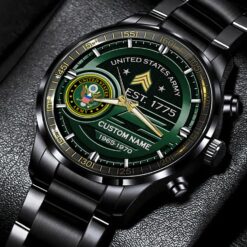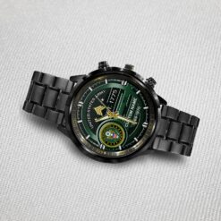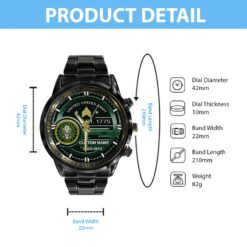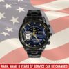 Personalize your Black Stainless Steel Watch with custom engravings of your name, rank, and years of service. This thoughtful addition transforms your watch into a cherished memento, honoring your dedication and commitment to service.