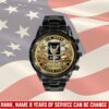 Elevate your Black Stainless Steel Watch with a personal touch by incorporating your custom details like name, rank, and years of service. This unique addition commemorates your military experience in a stylish and meaningful way.