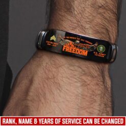 Incorporating an adaptive strap mechanism, the bracelet transcends traditional sizing limitations. It emerges as a profound tribute to veterans, symbolizing dedication, service, and the enduring spirit of patriotism.