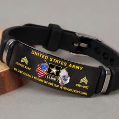Featuring a dynamic adjustable strap, the bracelet transcends conventional sizing constraints. It emerges as a powerful symbol of veteran appreciation, embodying the profound values of service, honor, and national pride.