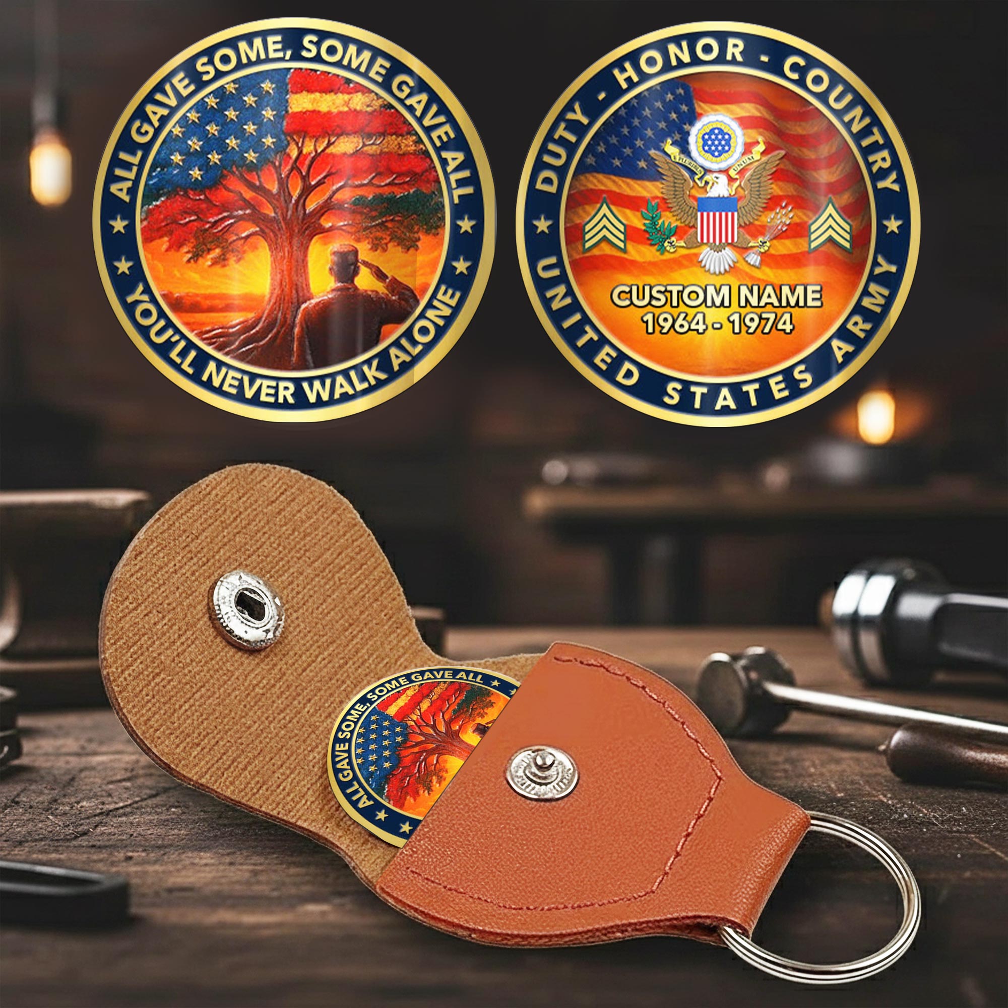 Built with respect and precision, the Veteran Honor Challenge Coin features professional-grade stainless steel with custom printing on both surfaces. Accompanied by a durable PU leather case with snap closure and keychain, it’s designed to last a lifetime.