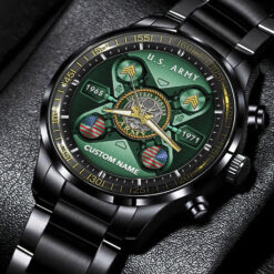 Elevate your Black Stainless Steel Watch with a personal touch by incorporating your custom details like name, rank, and years of service. This unique addition commemorates your military experience in a stylish and meaningful way.
