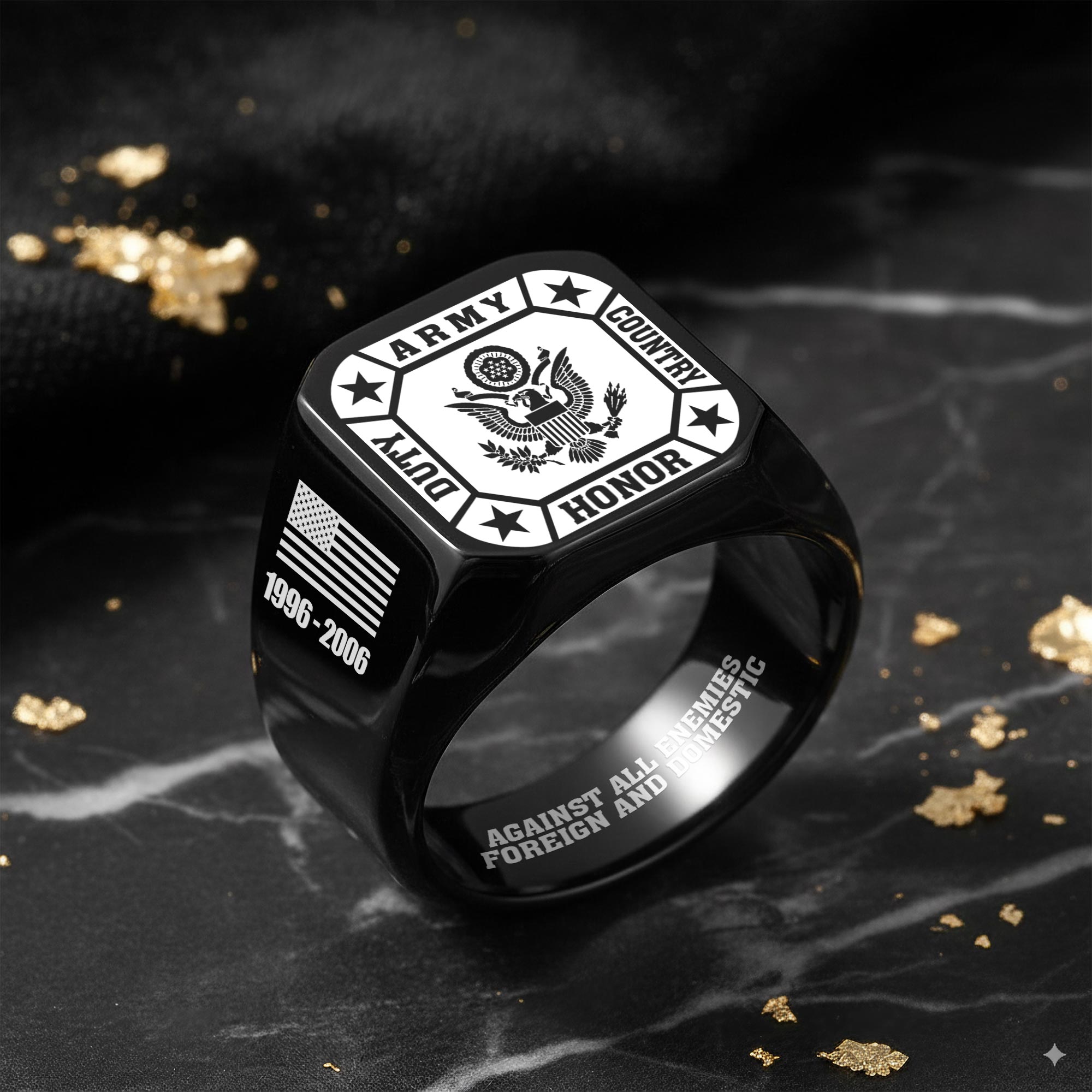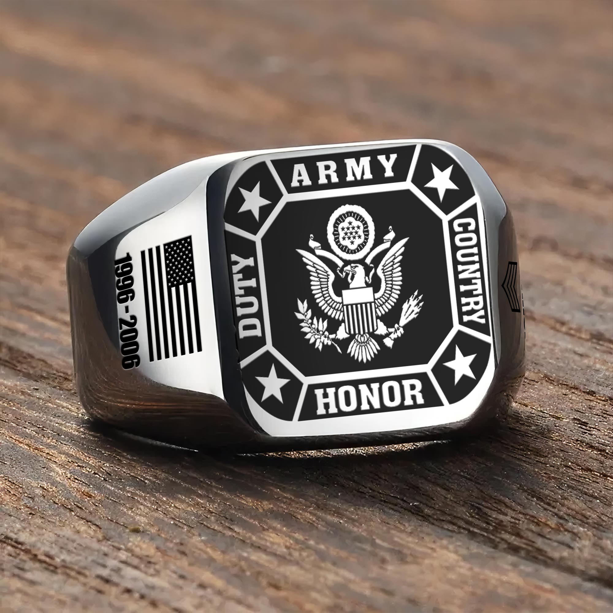 US Army, E 3 Army Private First Class – Engraved Men’s Ring
