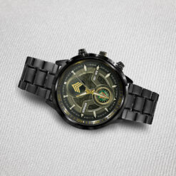 Make your Black Stainless Steel Watch uniquely yours by adding your custom information such as name, rank, and years of service. This personalized detail adds a special touch, celebrating your military journey with elegance and grace.