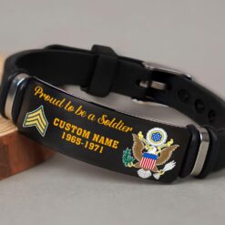 Incorporating an adaptive strap mechanism, the bracelet transcends traditional sizing limitations. It emerges as a profound tribute to veterans, symbolizing dedication, service, and the enduring spirit of patriotism.