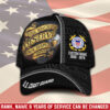Adding personal touches like rank, name, and years of service to this cap elevates its significance, turning it into a meaningful symbol of honor and recognition.