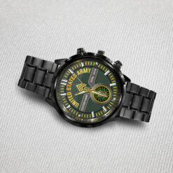 Make your Black Stainless Steel Watch uniquely yours by adding your custom information such as name, rank, and years of service. This personalized detail adds a special touch, celebrating your military journey with elegance and grace.