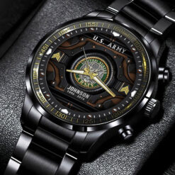 Elevate your Black Stainless Steel Watch with a personal touch by incorporating your custom details like name, rank, and years of service. This unique addition commemorates your military experience in a stylish and meaningful way.